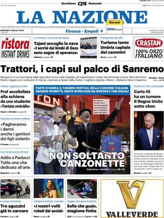 - Apertura con titolo "Trattori, i capi sul palco di Sanremo". Nel giorni in cui la protesta degli agricoltori arriva nella Capitale, gli organizzatori invitati alla kermesse canora. Ma la Rai frena
