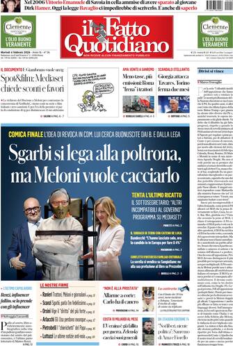- Apertura con titolo "Sgarbi si lega alla poltrona, ma Meloni vuole cacciarlo". L'idea di revoca in com. Lui cerca buonuscite dai B. e dalla Lega