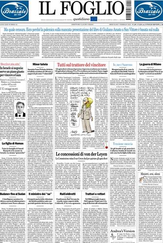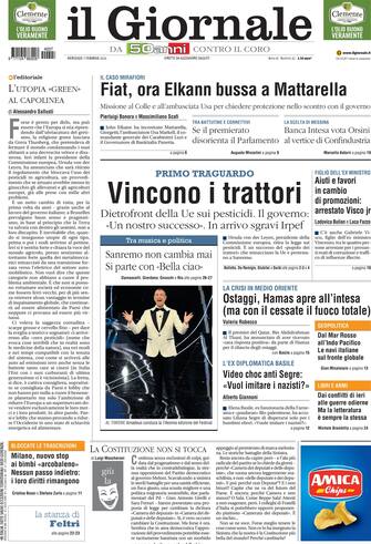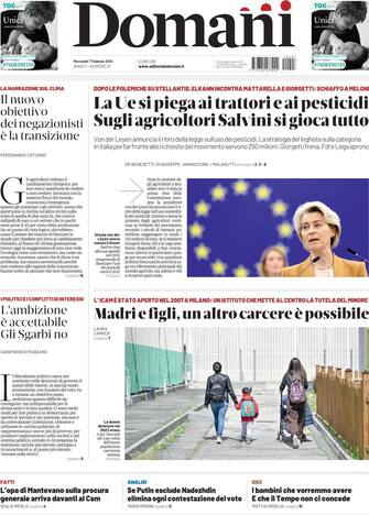 - Apertura con titolo "Trattori, meno vincoli dalla Ue". Von der Leyen apre agli agricoltori su pesticidi e sussidi: "Ritireremo le nuove regole"