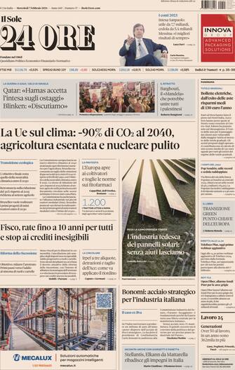 - Apertura con titolo "Trattori in rivolta, dietrofront della Ue". La Commissione europea ritira la proposta di taglio dei pesticidi e promette incentivi per terreni incolti