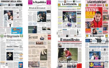 Aperture dei giornali dedicate alla protesta dei trattori con il dietrofront della Ue sui pesticidi. Promessi anche incentivi per i terreni incolti. Il governo: "Una nostra vittoria". Spazio alla prima puntata del Festival di Sanremo. A sorpresa sul palco Zlatan Ibrahimovic