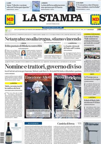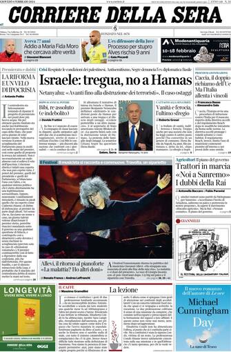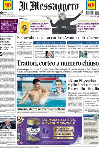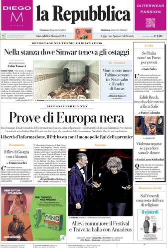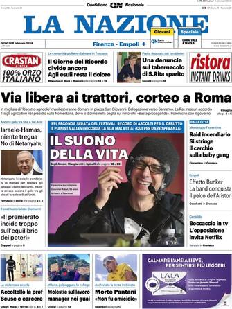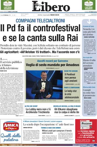 - Apertura con titolo "Nomine e trattori, governo diviso". Ira di Salvini sul treno per Sanremo: Meloni vuole Rai e Fs. Sit-in del Pd: Italia svilita dalla tv patriota