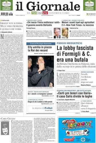 - Apertura con titolo "La lobby fascista di Formigli&C. era una bufala". Archiviata l'inchiesta su Fidanza, nata dallo scoop in tv prima delle elezioni
