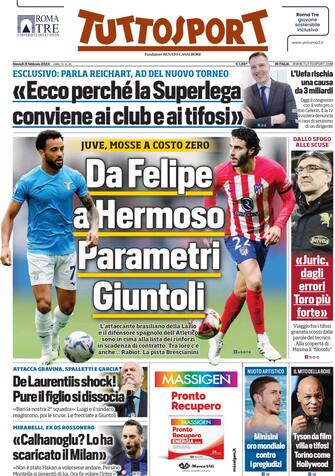 - Apertura con titolo "Da Felipe a Hermoso, parametri Giuntoli". Juve, mosse a costo zero