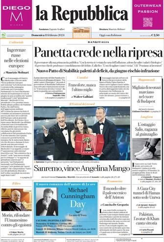 - Apertura con titolo "Bankitalia: salari più alti per spingere i consumi". Il governatore Panetta: "Prudenza sui conti pubblici, il taglio dei tassi si avvicina"