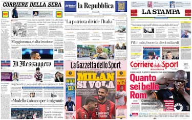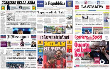 Tanti i temi affrontati dalle aperture dei giornali: le tensioni nella maggioranza e lo scontro sul terzo mandato, il conflitto in Medioriente con l'irruzione dell'esercito ebraico a Khan Yunis in cerca di ostaggi di Hamas e le parole di Netanyahu, ma anche la serata di playoff di Europa League che sorride alle italiane. E poi l'addio di Mbappé al Psg
