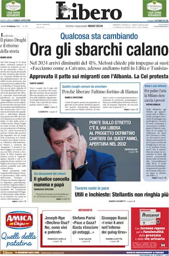 - "Ora gli sbarchi calano" è il titolo d'apertura. Nel 2024 arrivi diminuti del 41%. Meloni chiede più impegno ai suoi: "Facciamo come a Caivano, adesso andiamo tutti in Libia e Tunisia". Poi il via libera al Ponte sullo Stretto