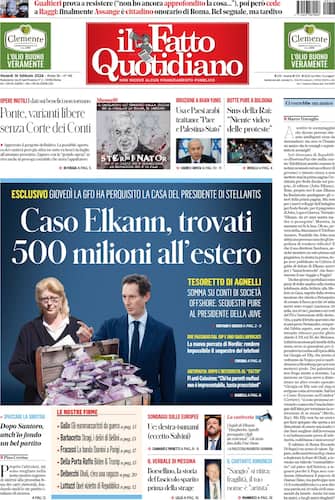 - Apertura sul caso Elkann: "Trovati 500 milioni all'estero. Giovedì la Gdf ha perquisito la casa del presidente di Stellantis". In alto, focus sul Ponte sullo Stretto: "Varianti libere senza Corte dei Conti. I dati sui benefici che non tornano"