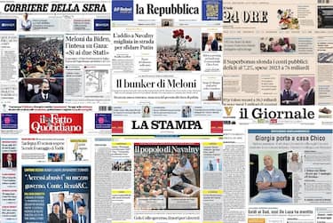 Il viaggio della premier Meloni in Usa e il suo incontro con il presidente Biden, il ritorno di Chico Forti in Italia dopo 24 anni in cella negli Stati Uniti, il conflitto a Gaza dopo la strage del pane e i funerali del dissidente russo Navalny sono tra le notizie in apertura più riprese dai maggiori giornali nazionali