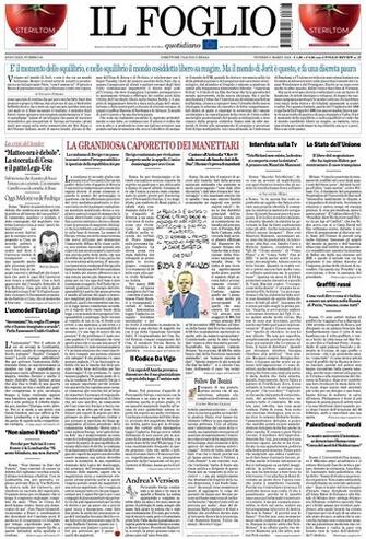 - Il titolo principale ("La grandiosa caporetto dei manettari") mette insieme tre approfondimenti sui casi giudiziari del momento: la condanna a Davigo e l'inchiesta sul dossieraggio. In taglio alto, l'editoriale del fondatore Giuliano Ferrara: "E' il momento dello squilibrio, e nello squilibrio il mondo cosidetto libero sa reagire. Ma il mondo di Jorit è questo, e fa una discreta paura"