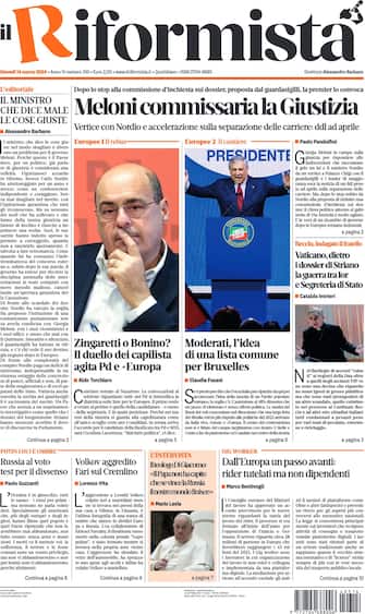 - "Meloni commissaria la giustizia" è, invece, il titolo scelto dal Riformista, dove trovano anche spazio i rumors in vista delle candidature alle Europee di centrodestra e centrosinistra