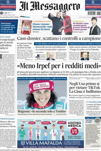 - Sul Messaggero l'apertura è riservata all'ultima promessa del governo: "Meno Irpef per i redditi medi". In primo piano, intervista alla sciatrice Federica Brignone