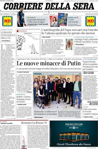 - Spazio alla guerra in Ucraina in apertura del Corriere della Sera, con "le nuove minacce di Putin", che si dice pronto a inviare truppe al confine finlandese ed evoca lo spettro dell'atomica. Di spalla, l'autobiografia del Papa , che annuncia: "Non sarò mai emerito"