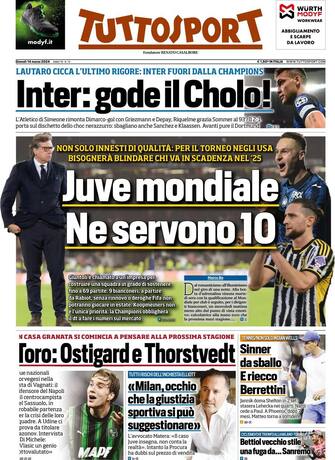 - Su Tuttosport, invece, restano in primo piano gli obiettivi di mercato della Juventus dopo la qualificazione al Mondiale per club 2025, ottenuta grazie al ko del Napoli col Barcellona