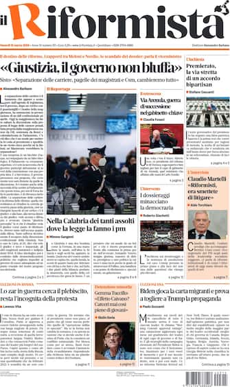 - Intervista al viceministro Francesco Paolo Sisto sui temi della giustizia, invece, sulla prima del Riformista, dove trovano spazio anche le elezioni in Russia