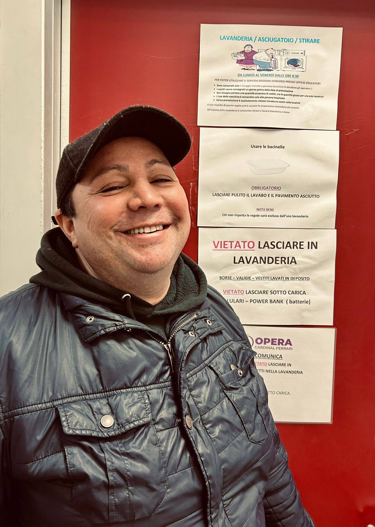 Rogerio ha 51 anni, è nato in Brasile ed è in Italia dal 1990. E’ venuto qui in vacanza e poi ha deciso di tornare per completare gli studi di economia. Una volta a Milano è entrato in un giro di persone dello spettacolo e si è innamorato di un uomo, un cuoco molto conosciuto in città, hanno vissuto insieme per diciassette anni e poi la loro storia è finita. Rogerio aveva 38 anni e inzia il periodo buio della sua vita. La depressione lo tiene chiuso in casa, smette di lavorare e di pagare l’affitto dell’appartamento in centro, a Porta Venezia, dove conviveva con il suo compagno e finisce in un dormitorio comunale.Da allora grazie agli assistenti sociali Rogiero, anche se non ha l’età per frequentare l’opera cardinal Ferrari, entra in quella che definisce la sua “nuova famiglia allargata”. Lavorava qui come volontario nel guardaroba e adesso è in lavanderia. “Durante le feste la cosa più bella è che tutti qui si preoccupano non solo del pasto ma anche di portare allegria per chi vive ai margini. A Natale c’è lo scambio di regali, a Pasqua abbiamo aperto le uova, a ferragosto mangiamo l’anguria tutti insieme”.