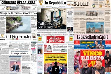 La tragedia di Suviana, dove è esplosa una centrale elettrica, il via libera del Cdm al Def light concordato con Bruxelles, il conflitto Israele-Hamas e le prime due sfide dell'andata dei quarti di Champions League sono tra le notizie in apertura più riprese dai maggiori giornali nazionali