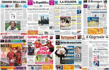 - “Belle di Coppa. Milan e Roma da impazzire”: il quotidiano sportivo si concentra sulle partite di questa sera che vedranno protagoniste nel ritorno dei quarti di Europa League la squadra romana e quella milanese ma anche l’Atalanta che sfida il Liverpool. In Conference League stasera gioca invece la Fiorentina che ospita il Viktoria Plzen, dopo lo 0-0 dell'andata