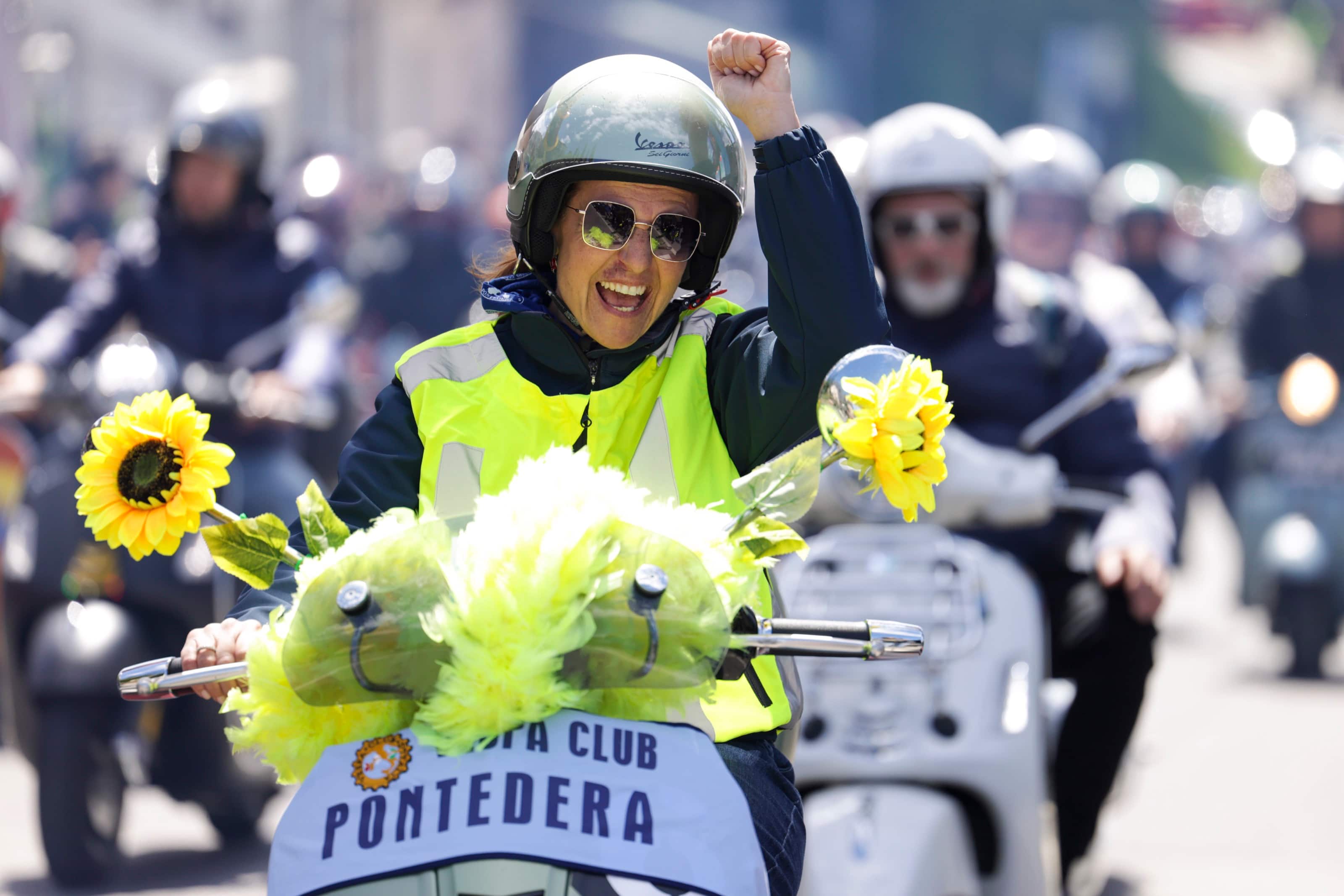 Un serprentone di scooter Piaggio lungo oltre 15 chilometri ha sfilato partendo da Pontedera e rientrando al Vespa Village, luogo dei festeggiamenti finali. Un'affluenza da record per l'evento che ormai si ripete da 70 anni con Vespisti arrivati da ogni continente