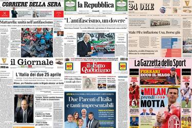 Le celebrazioni del 25 aprile, con le parole di Mattarella e Meloni e le tensioni nei cortei, la candidatura del generale Vannacci con la Lega e la revoca della condanna a Weinstein nel processo Metoo sono tra le notizie in apertura più riprese dai maggiori giornali nazionali