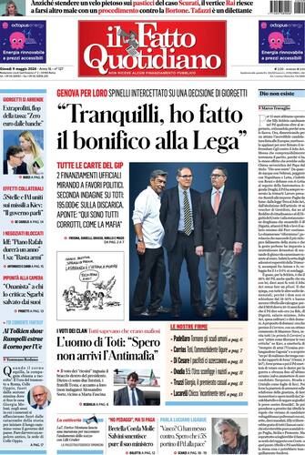 L'apertura di tutti i quotidiani italiani è politica e racconta il terremoto in Liguria per l'inchiesta che ha travolto il governatore Giovanni Toti. Spazio anche al superbonus