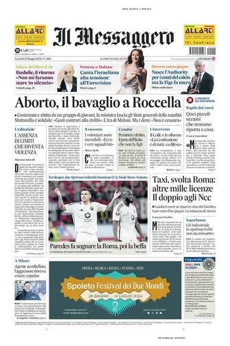 - “Dissenti chi parla” è il titolo del quotidiano che con un gioco di parole torna a fare riferimento alle polemiche scaturite agli Stati generali della Natalità, quando la ministra Roccella, interrotta dalla contestazione degli studenti, se n’è andata dal forum. Spazio anche al Medioriente: “Israele senza freni, Rafah a ogni costo”