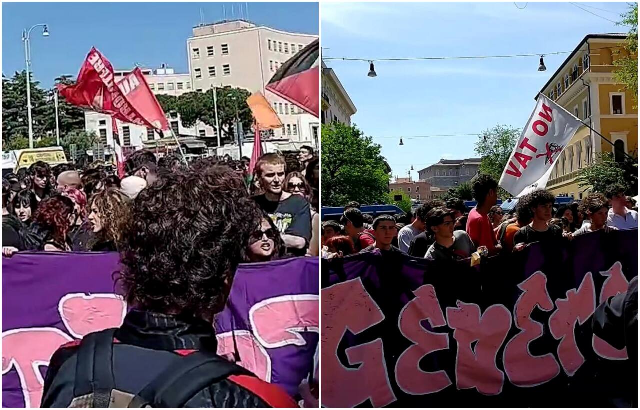 Sono circa 250 le persone che stanno prendendo parte al corteo al seguito di uno striscione viola contro gli Stati generali della Natalità e "per un'altra educazione". Durante la manifestazione è stato bruciato il programma "educare alle relazioni" del ministro Valditara. "Gridiamo per tutte le donne che più non hanno voce", hanno gridato i ragazzi. "La vostra repressione non spegnerà la nostra rabbia" hanno sottolineato dall'assemblea Aracne lanciando la manifestazione. "Sui nostri corpi decideremo sempre e solo noi" hanno aggiunto.