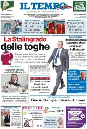 - Anche in questo caso, apertura dedicata ia bianconeri: "Fino alla fine. Grande festa Juve: è in Champions con il Bologna". Teglio medio sull'Atalanta vittoriosa nel posticipo: "De Ketelaere show. Gasp piega la Roma". In taglio basso, la festa all'Olimpico per lo scudetto della Lazio del 1974: "Tutti figli di Maestrelli"