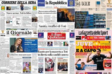 L'inchiesta per corruzione in Regione Liguria, le polemiche governo-magistratura, l'avanzata russa in Ucraina sono tra le notizie in apertura nei principali giornali nazionali. E ancora, l'indagine sulla rissa a Milano che vedrebbe coinvolto anche Fedez, la giornata di serie A e gli altri risultati sportivi