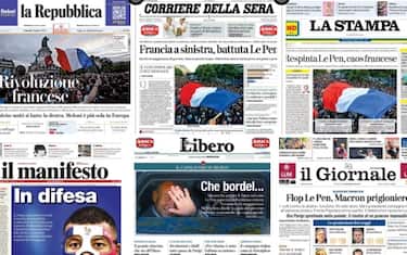 Le aperture dei giornali sono tutte dedicate all'esito delle elezioni francesi, che ha visto il trionfo della sinistra e la sconfitta del partito di Marine Le Pen