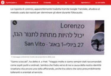 Le incongruenze in questa storia sono diverse. Stando alle parole dell’host, si tratta solo di un equivoco che trova soluzione in alcuni dati di fatto. “Si è detto che ho mandato un messaggio antisemita e subito dopo ho annullato la prenotazione. E’ accaduto esattamente il contrario - ha spiegato l’uomo - La prenotazione l’avevo annullata già il 18 maggio, per motivi logistici. L’altro messaggio invece è partito quattro giorni dopo, il 22”. L’altro elemento è la decontestualizzazione, sempre stando alle parole dell’host, della frase incriminata. “Stavo chattando con un altro ospite che mi chiedeva istruzioni sulla valvola del forno. Ho digitato la risposta in inglese: could be under the gas stove”. (“Potrebbe - sottinteso, la valvola - essere sotto il forno a gas”). Il messaggio è però finito per errore nella chat sbagliata, ovvero la conversazione di qualche giorno prima, non ancora archiviata da Airbnb, con la famiglia della prenotazione annullata.