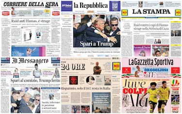 Solo pochissimi quotidiani sono riusciti a cambiare l'apertura dopo l'attentato all'ex presidente americano Trump avvenuto intorno alla mezzanotte ora italiana. Gli altri, andati in stampa prima, vedono in prima pagina il raid israeliano contro Hamas (e la mente dell'attacco del 7 ottobre) e la polemica sulle armi a Kiev. Non manca spazio per la sconfitta di Paolini in finale a Wimbledon e il concerto di Swift a San Siro