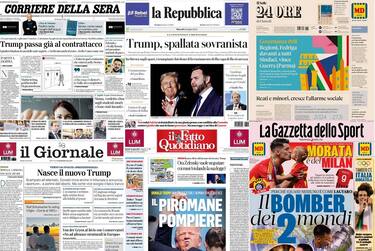- Apertura sugli Usa: "Nasce il nuovo Trump". In taglio medio dedicato all'Ue: "Von der Leyen al bivio con i conservatori: 'No ad alleanze strutturali in Europa'". La fotonotizia dedicata al fratello dell'ex campione di Formula 1: "Ralf Schumacher fa outing. Il figlio: 'Con te al 100%'". Nel box in spalla, l'incontro tra la premier e il governatore della Campania a Bagnoli: "Meloni-De Luca. La fotografia della tregua"