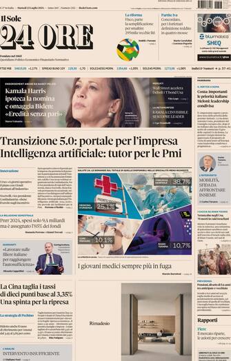 - La corsa alla Casa Bianca di Kamala Harris condiziona anche i mercati con Wall Street che accelera. Operativo a breve il portale per le imprese che permetterà di prenotare la partecipazione ai fondi Transizione 5.0. “Intelligenza artificiale: tutor per le Pmi”. Criticità negli ospedali italiani: “I giovani medici sempre più in fuga”. L’intervento di Carlos Tavares, Ceo di Stellantis: “Mobilità, sfida da affrontare insieme”