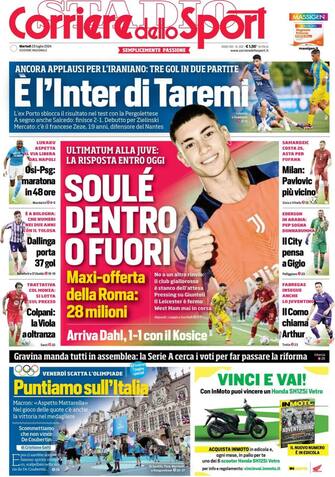 - Amichevole Inter-Pergolettese vinta dai nerazzurri: Taremi sblocca il risultato segnando il suo terzo gol in due partite. Calciomercato in casa Juve: "Soulé dentro o fuori”, l’ultimatum della Roma che offre 28 milioni, entro oggi la risposta. Tre giorni all’inizio delle Olimpiadi: “puntiamo sull’Italia”. Macron: “Aspetto Mattarella”