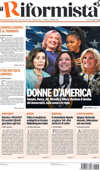 - Apertura dedicata a tutte le donne d’America: “Kamala, Nancy, Jill, Michelle e Hillary decidono il destino dei democratici, sulla scena e in regia”. I cambiamenti che gli Usa hanno vissuto nel giro di pochissimi giorni sono raccontati in un pezzo di Paolo Guzzanti: “C’era una volta l’America”. Da Trump diventato “Santo” dopo l’attentato che lo ha ferito all’orecchio, a Kamala Harris che quasi dal nulla inizia la sua corsa alla Casa Bianca
