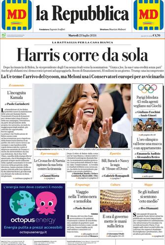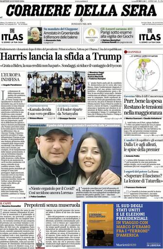 - “Harris corre da sola”: ancora in primo piano la corsa per la Casa Bianca che vede protagonista Kamala Harris dopo il ritiro di Joe Biden. La vicepresidente non ha rivali tra i democratici e in un giorno ha raccolto 81 milioni di donazioni. Manca pochissimo all’inizio delle Olimpiadi: “Parigi blindata, 45mila agenti vegliano sui giochi”. Dopo quanto accaduto al giornalista della Stampa, aggredito a Torino, il reportage di Paolo Berizzi: “Viaggio nella Torino nera e xenofoba”