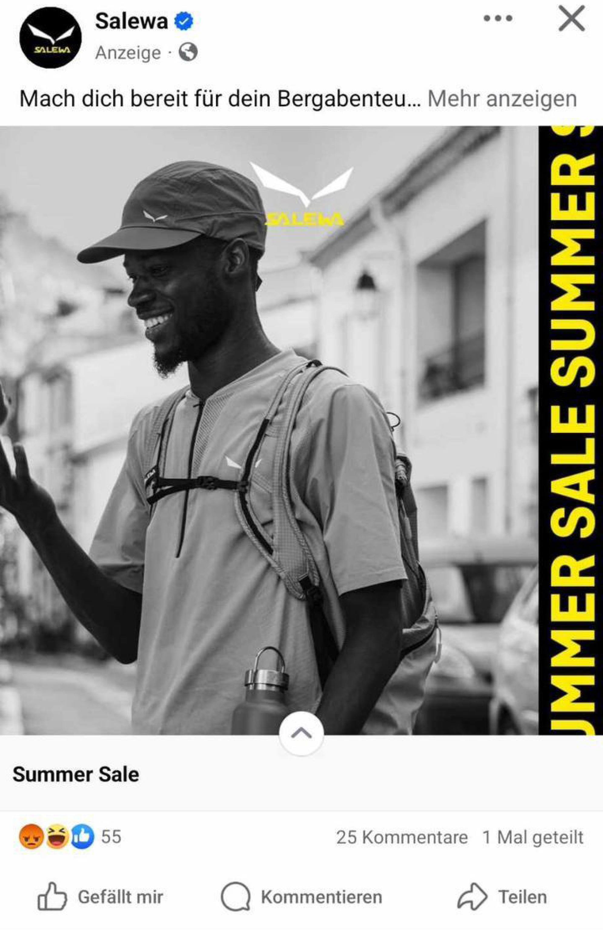 Diversi commenti razzisti sotto una pubblicità pubblicata online di Salewa, azienda che opera a livello internazionale e che vende materiale tecnico per gli appassionati della montagna, sono comparsi a corredo di una foto nella quale compare un ragazzo di colore, alimentando il dibattito oltre che l’indignazione sui social. Il testimonial, un modello francese di origini sudanesi, è stato preso di mira ed accostato a ladri e profughi. Il produttore bolzanino è dovuto intervenire, cancellando gli interventi non consoni. "La nostra posizione sull'inclusione anche in montagna non cambia. La montagna è di tutti", ha spiegato il direttore marketing di Salewa, Thomas Aichner. "Già in passato abbiamo fatto campagne con modelli di diversi colori di pelle. Per noi tutti gli uomini sono uguali", ha aggiunto.
