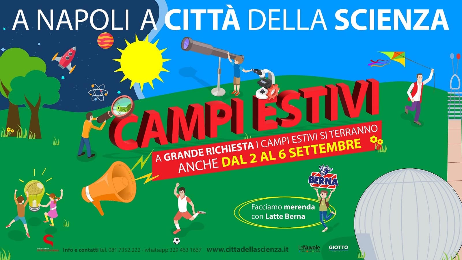 Città della Scienza propone un’estate all’insegna della scoperta con visite guidate al museo interattivo del corpo umano Corporea e alla mostra “Insetti & Co.”; science show esperimenti interattivi e spettacoli al Planetario. L’apertura è prevista dal martedì alla domenica dalle ore 10 alle ore 16, con chiusura nella settimana di Ferragosto (dal 12 al 19 agosto). Città della Scienza annuncia che l’edizione 2024 dei Campi Estivi si protrarrà anche a settembre, nella settimana dal 2 al 6. Per tutti i bambini in età compresa tra i 5 e gli 11 anni si rinnova il programma di attività ludico-scientifiche, laboratori didattici, giochi di movimento, momenti di socializzazione e anche sessioni di yoga.