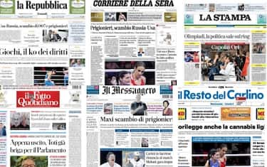 Le prime pagine di oggi sono dedicate allo storico accordo Russia-Usa che ha rilasciato 26 prigionieri, al discusso match olimpico di boxe tra la pugile algerina Imane Khelif e l'italiana Angela Carini e al ritorno in libertà di Giovanni Toti
