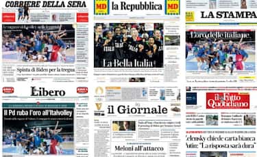 - "Capolavoro" è il titolo a tutta pagina della Gazzetta sul primo posto conquistato dalle azzurre del volley che racconta "lo storico trionfo delle sorelle d'Italia". "Siamo un Paese fondato anche sullo sport (grazie alle donne)" titola l'editoriale a firma di Giorgio Specchia