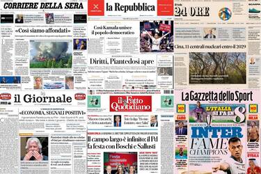 Le operazioni di ricerca dopo il naufragio del veliero a Porticello, le tensioni all'interno del M5s, le polemiche nel governo sullo ius scholae, il rogo a Cinecittà e la convention democratica in Usa sono tra le notizie in apertura più riprese dai maggiori giornali nazionali