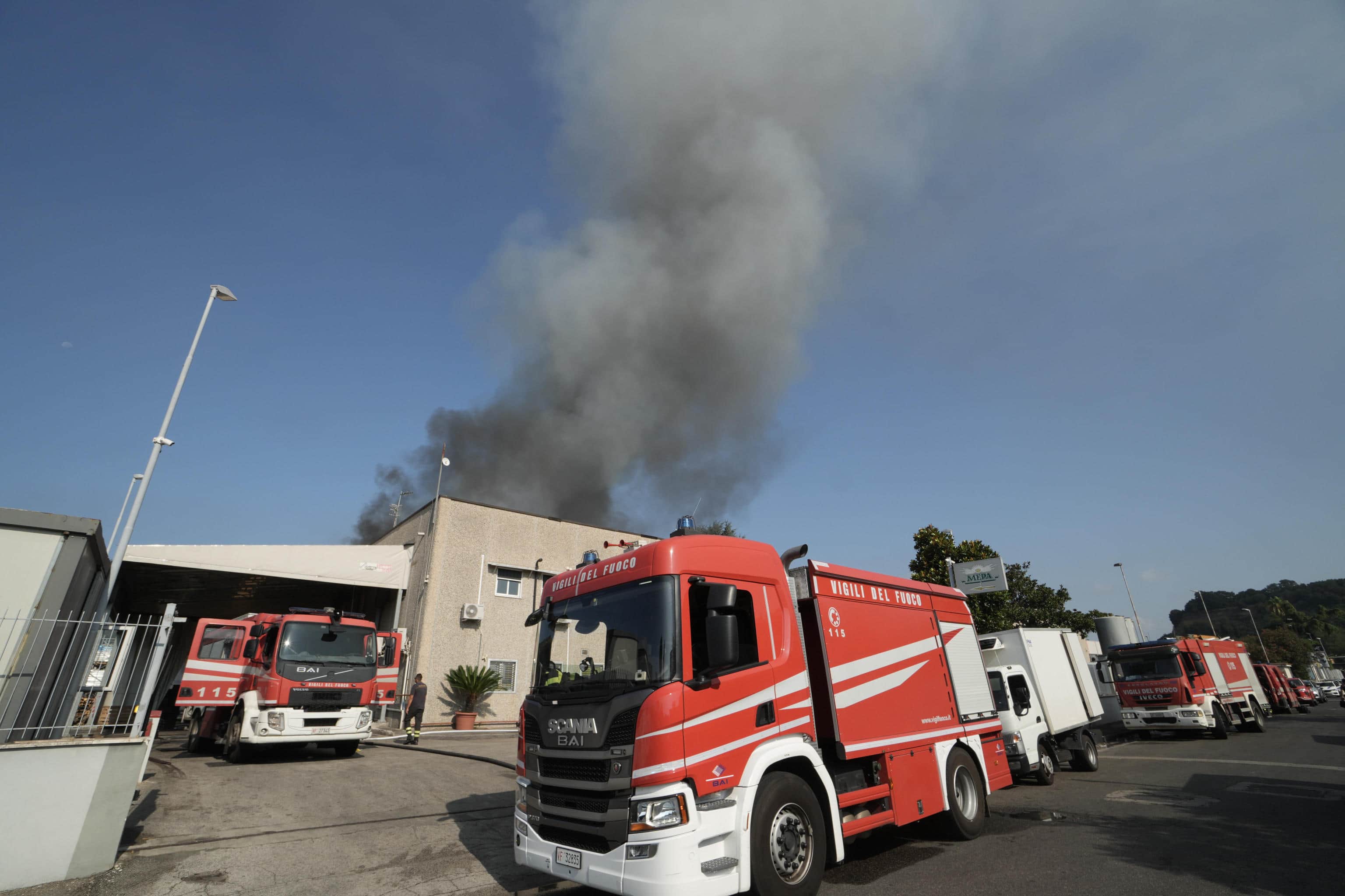 Un incendio si è sviluppato tra i capannoni di una ditta del settore alimentare in strada provinciale per Pianura. In fiamme diversi autocarri. Sul posto i carabinieri