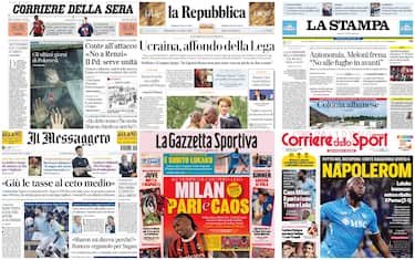 Le aperture dei giornali sono dedicate alle questioni interne al governo, con le prime discussioni sulla manovra e gli altri grandi temi come autonomia, sostegno all'Ucraina e ius scholae. Spazio anche a Conte (M5s) che chiude la porta a Renzi (Iv). Poi la confessione dell'omicida di Verzeni, con le sue ultime parole alla donna prima di ucciderla. Infine, il calcio con il pari del Milan (2-2 con la Lazio) e la vittoria del Napoli (2-1) nel segno di Lukaku