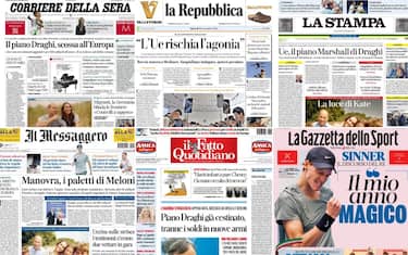 Il piano di Mario Draghi per riformare l'Unione Europea, l'annuncio di Kate Middleton con un post sui social circa la fine della chemioterapia, le vittorie di Sinner nel tennis e quella dell'Italia del calcio in Nations League. Questi i temi principali maggiormente presenti sulle prime pagine dei quotidiani, oggi in edicola
