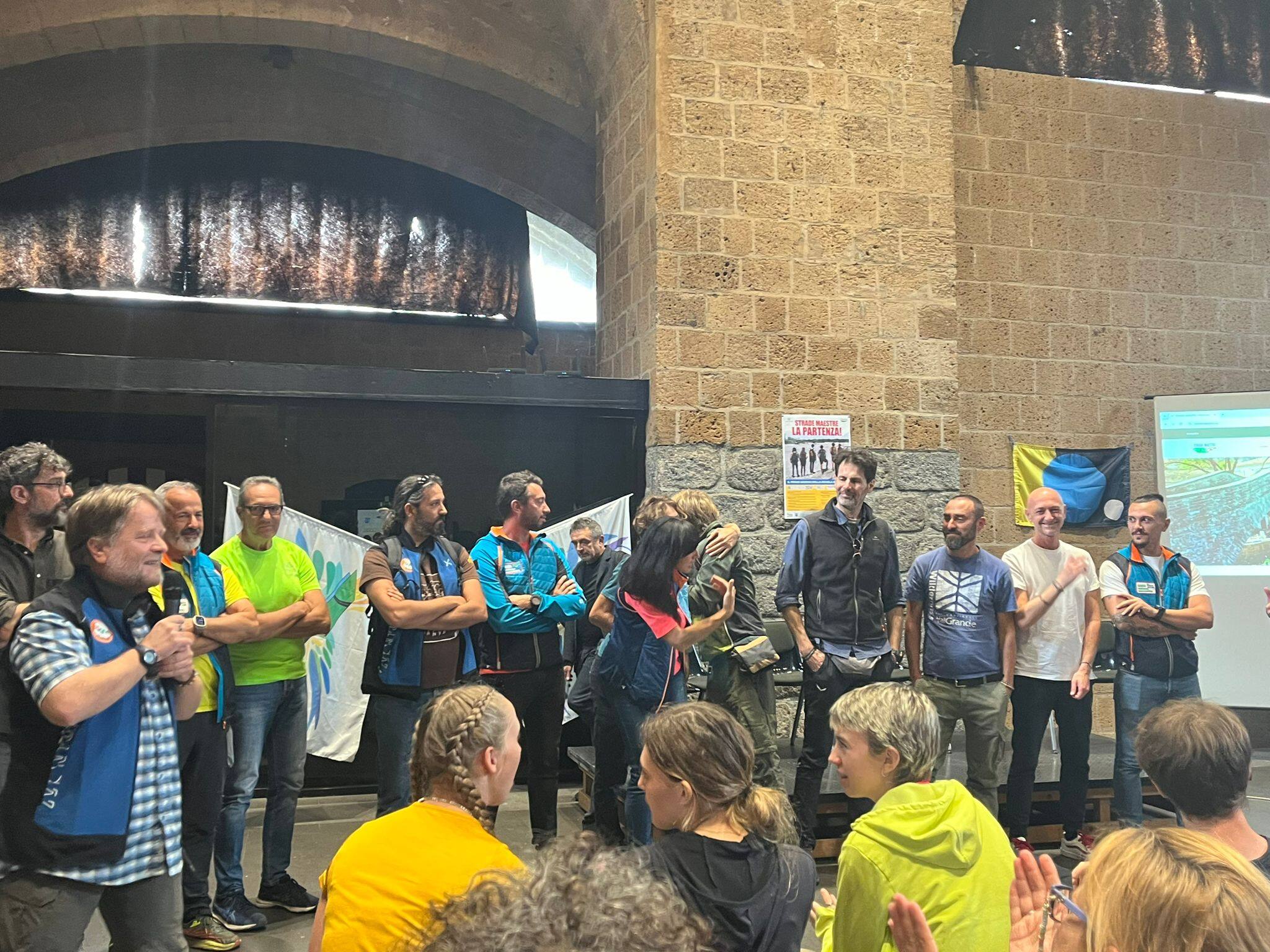 Ragazzi e docenti si sono ritrovati alla stazione ferroviaria di Orvieto, in Umbria, e si sono subito diretti verso il centro storico. Hanno raggiunto Palazzo del Capitano del Popolo intorno alle 12, dove i promotori e fondatori di Strade Maestre e CamminaMenti (Loperfido, Sassoli, Cortella, Paolocci ed Emilio Ruffolo), hanno presentato il progetto davanti alla stampa. Nel pomeriggio la classe si è messa in moto e si è diretta al Duomo, prima tappa di questo lungo viaggio, per poi camminare insieme a familiari, amici e rappresentanti delle organizzazioni che sostengono l’impresa fino alla frazione di Gabelletta, dove si trova la sede del gruppo scout Agesci Orvieto 1, che ospiterà il gruppo in cammino per la prima notte di viaggio.