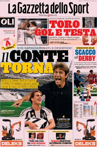 - Juve-Napoli da primato: e chi si rivede! Il Conte torna: Motta al primo test scudetto contro un simbolo bianconero. Yildiz-Kvara, una sfida geniale. Domani Inter-Milan, scacco al derby: le mosse di Fonseca per salvarsi e di Inzaghi per vincere il settimo di fila