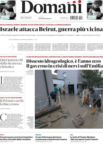 - Israele attacca Beirut, guerra più vicina. L'Idf bombarda il quartiere sciita e fa una strage: "Uccisi un alto comandante di Hezbollah e 10 miliziani". Gallant: "Nuova fase del conflitto". In Usa Trump cerca il voto della comunità ebraica. Dissesto idrogeologico, è l'anno zero: il governo in crisi di nervi sull'Emilia. La destra non ha piani per il contrasto del climate change. Musumeci: "Ora polizze obbligatorie"