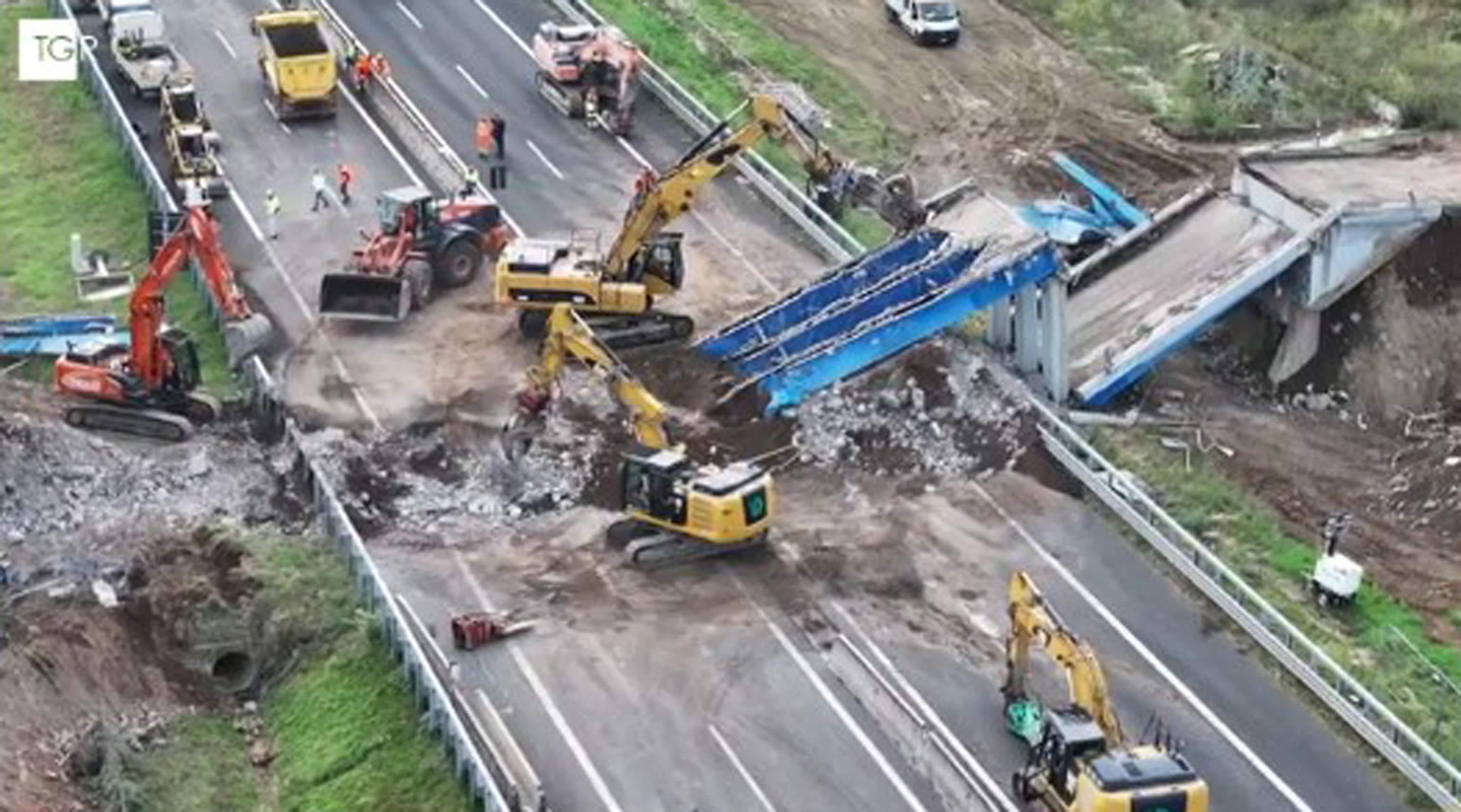 Terminati i rilievi da parte delle autorità, Anas sta procedendo con le operazioni di rimozione delle parti di cavalcavia che occupano le carreggiate, per permettere la definitiva riapertura del tratto autostradale, che al momento è prevista tra la tarda mattinata e il primo pomeriggio di oggi. Nel frattempo, Anas ha annunciato che sono ripresi i lavori di demolizione del cavalcavia. Poi ha precisato che "le operazioni saranno completate in giornata" e sarà ripristinata la sede autostradale. L'intervento di Anas "consiste nell'ammodernamento del nuovo svincolo di Torrenova, con realizzazione di un nuovo e moderno cavalcavia in sostituzione del manufatto oggetto di completa demolizione".