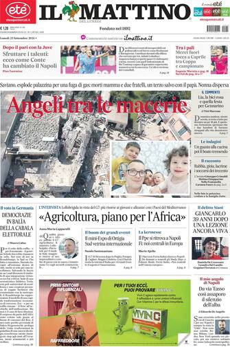 - "Angeli tra le macerie" è l'apertura del Mattino di Napoli dedicata alle vittime del crollo della palazzina a Saviano per una fuga di gas. Sul fronte economico, un'intervista al ministro Lollobrigida in vista del G7: "Agricoltura, piano per l'Africa"